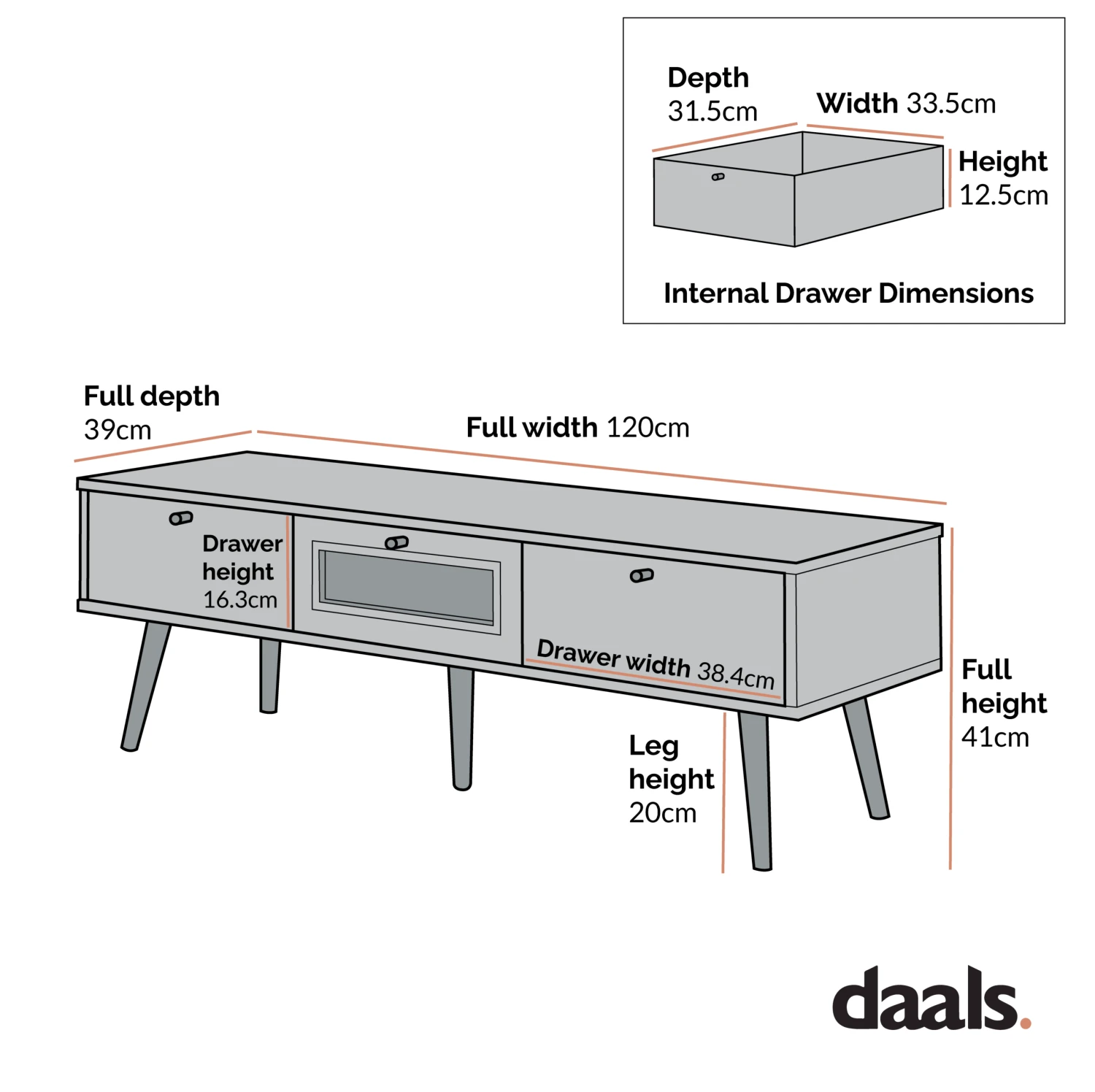 - Drawer internal size: W 33.5 x D 31.5 x H 12.5 cm
