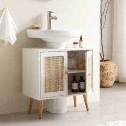 - Cabinet door front: hand-woven natural rattan
