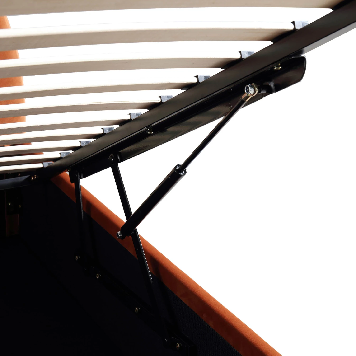 - The bed is upholstered with sumptuous velvet touch fabric in rust colour from headboard to base to make it the statement piece in any bedroom.