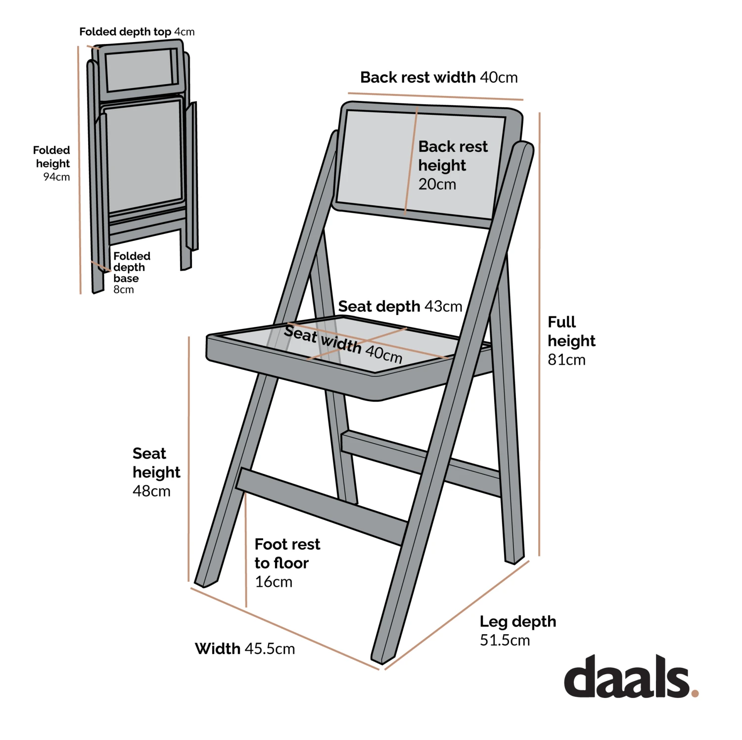 - Overall chair size: W 45.5 x D 51.5 x H 81 cm